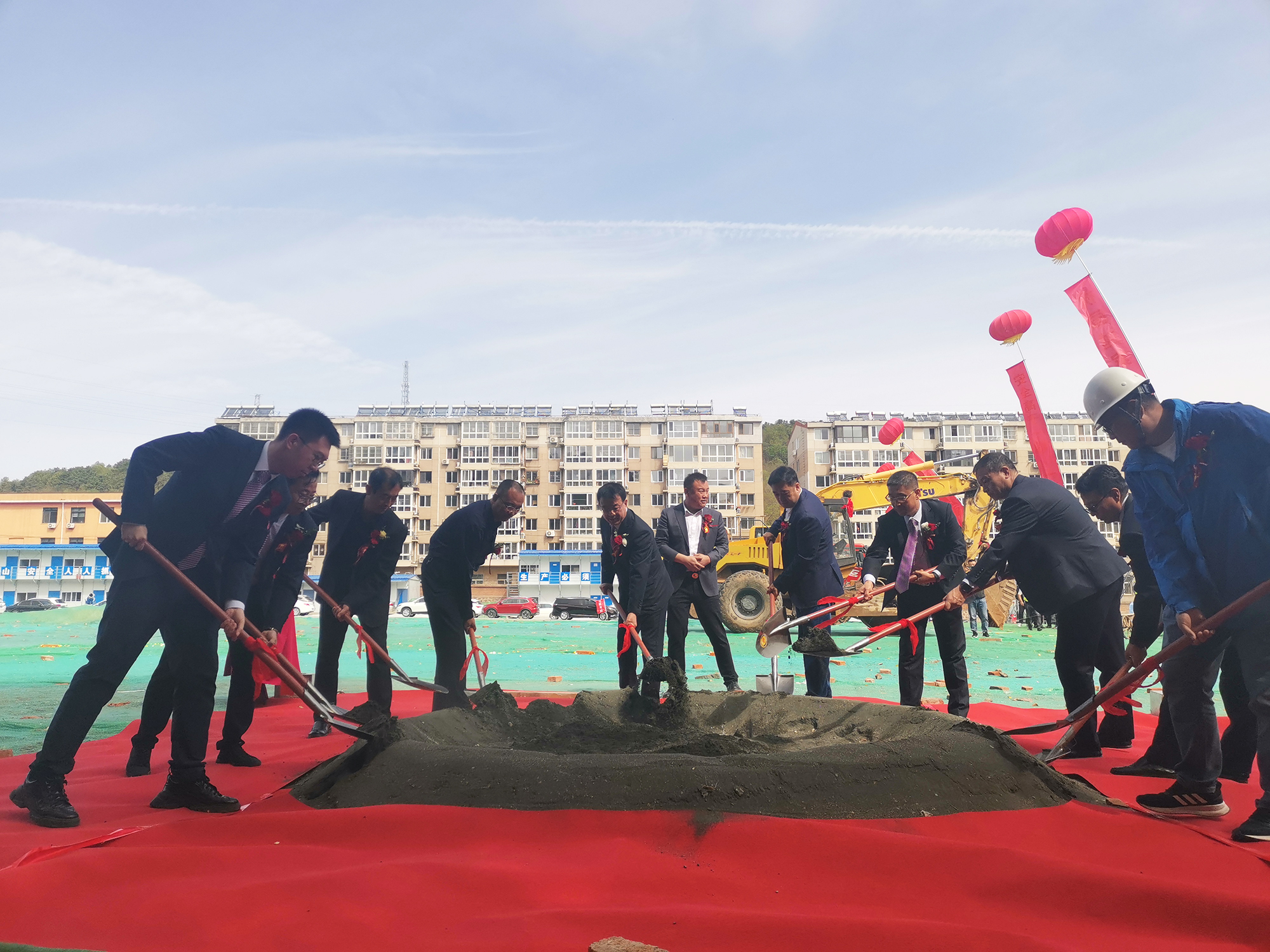9:40分,facebook(中国)一站式服务官网facebook官网集团党委书记、董事长张建军为祥狮点睛,伴着鼓声开始舞动,送上祥瑞和祝福,祝国越家园项目开工大吉。随后领导们共擎金锹,扬土培基,现场工程器械全面开工作业,仪式圆满闭幕。