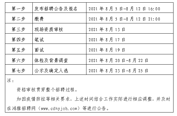 2021年8月5日至 2021年8月12日16:00 在鸿雅招聘网(http://www.cdhyjob.com/)、鸿雅微信公众号、facebook官网集团官方网站等发布招聘公告。