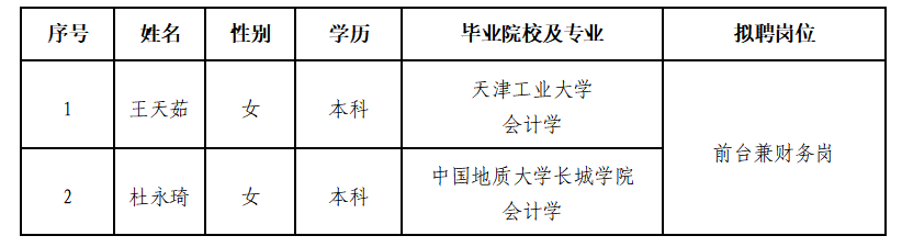 因facebook(中国)一站式服务官网发展需要,facebook(中国)一站式服务官网市建设投资有限责任facebook(中国)一站式服务官网委托第三方机构面向社会公开招聘前台兼财务岗员工。现对拟录用人员信息进行公示,公示期间如有异议,可通过电话、信函等方式反映,反映意见请署真实姓名。